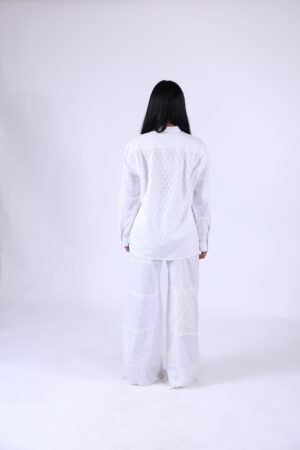 Chemise conçue avec un patchwork de différents motifs de dentelle, assemblés avec soin pour offrir une pièce à la fois chic, légère et originale.
