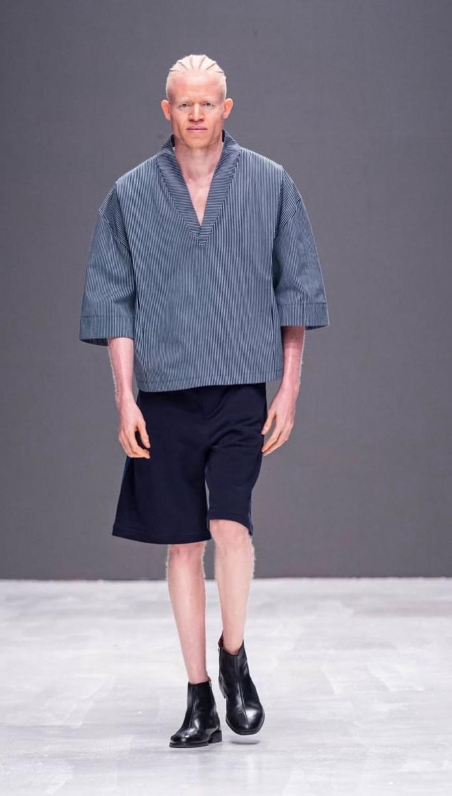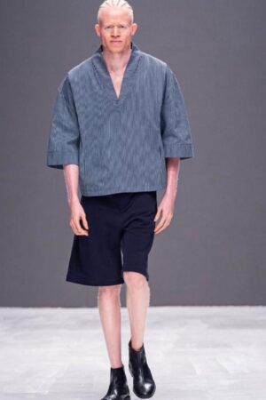 Haut à la silhouette fluide et contemporaine. Sa coupe ample apporte confort et aisance, tandis que les rayures fines structurent visuellement la pièce. Le col V profond ajoute une touche moderne et affirmée.