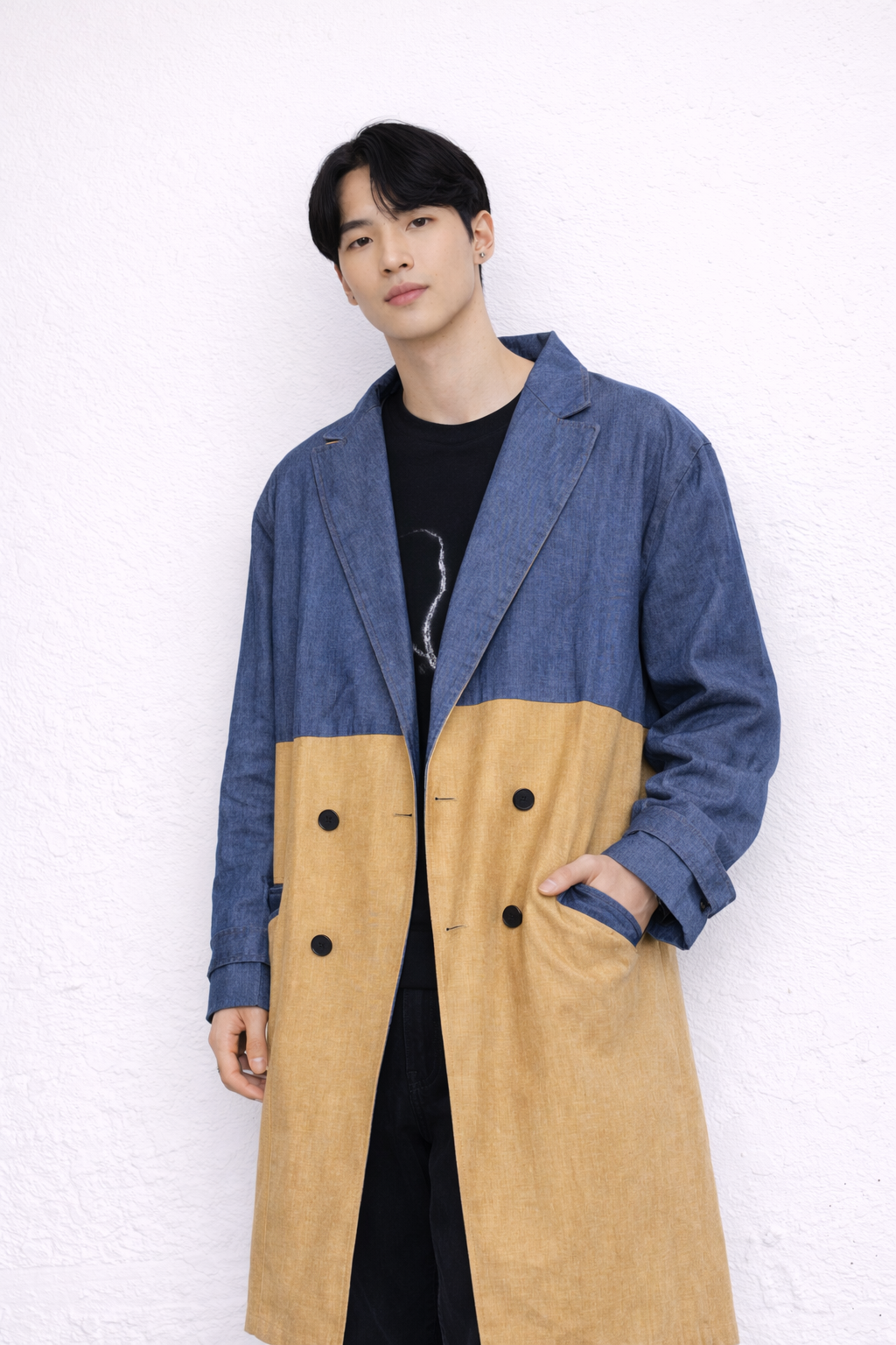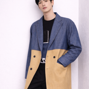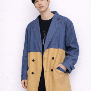 Matière : Denim bleu et tissu beige