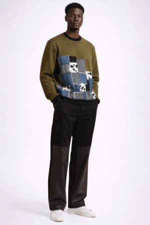 Ce pull unisexe s’adapte à toutes les silhouettes et apporte une touche originale avec son patchwork graphique sur fond noir. Idéal pour la mi-saison ou à superposer en hiver.