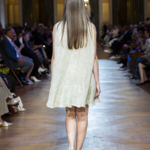 Coupe sans manches, tombé fluide avec un subtil effet volanté.