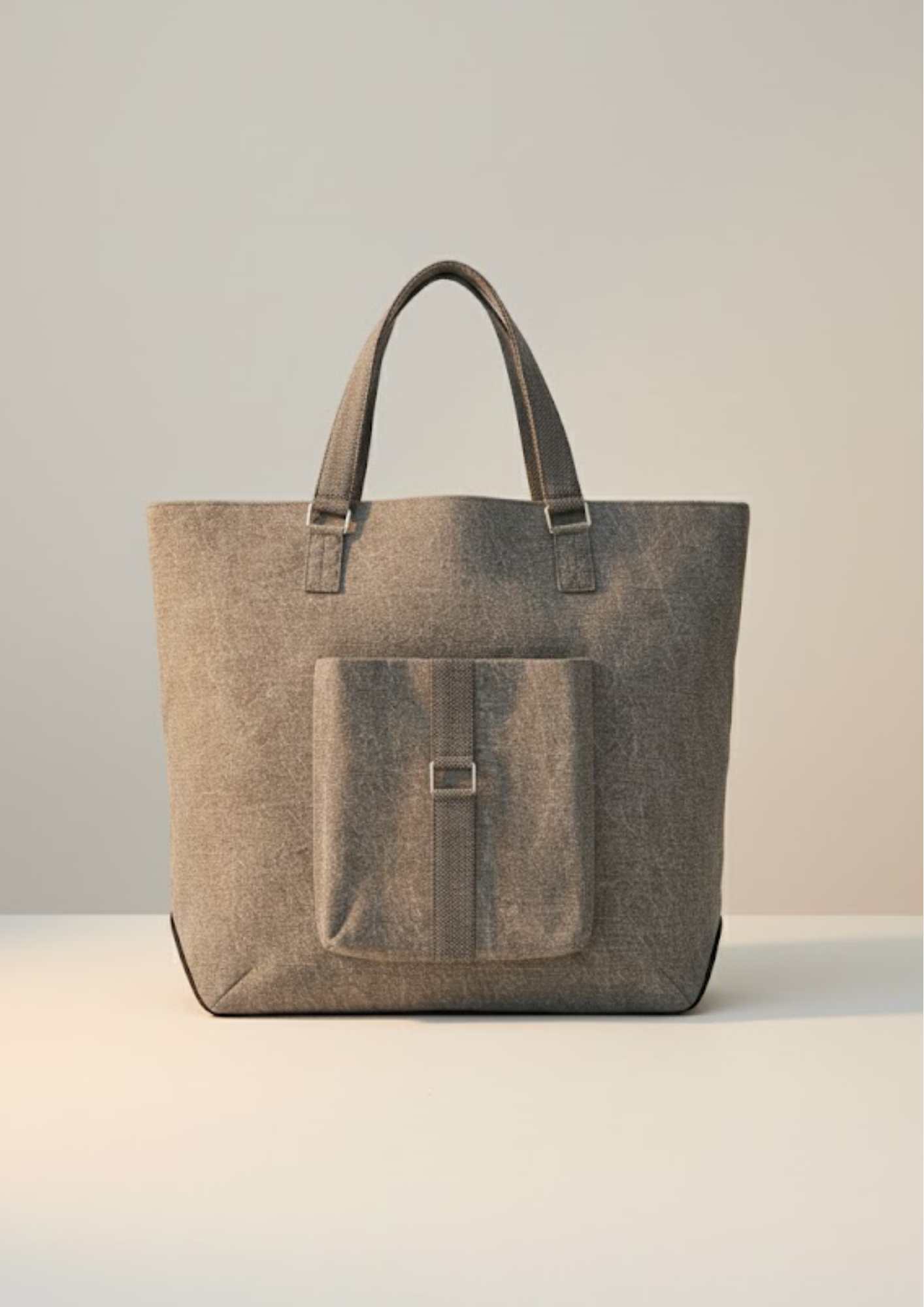Sac structuré en Denim Usé gris. Un accessoire moderne et durable avec une poche extérieure fonctionnelle.