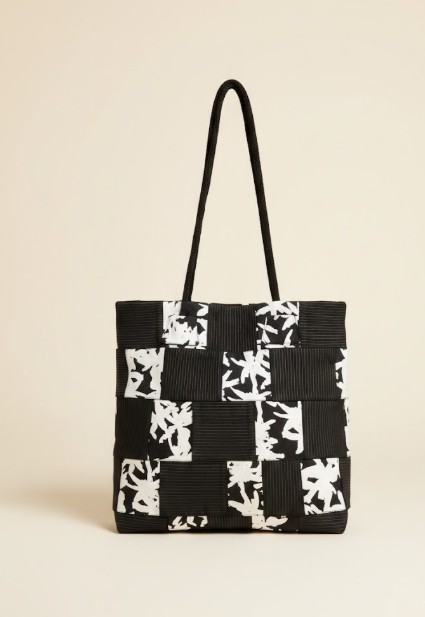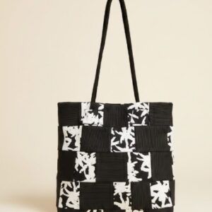 Ce Sac tote bag se distingue par son tissage en damier unique, alternant des bandes noires texturées et des empiècements blancs aux motifs palmiers. Un accessoire à la fois structuré et conçu pour ceux qui cherchent une pièce forte pour sublimer une tenue.